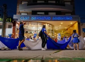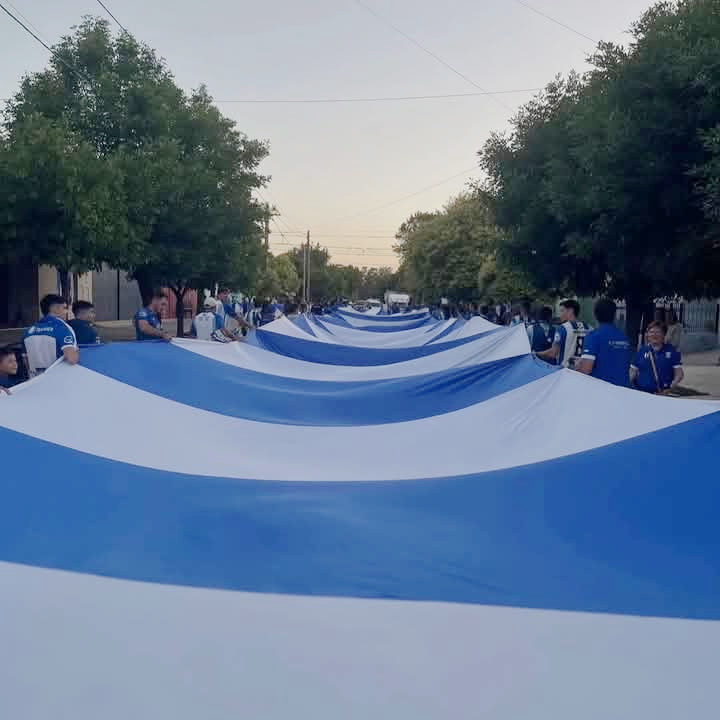 La misma, llevada por la familia del ” Raya”, salió a recorrer las calles comenzando el camino por el antiguo estadio de Barrio Gobatto, pasando frente a la sede principal, para llegar hasta el estadio principal Modesto Marrone, para aportarle un colorido extra al escenario en su perímetro que tuvo mas tarde un encuentro con viejas glorias del club mezclados con futbolistas de la actualidad.