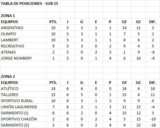 | Sarmiento (E) | 0 | Lagunense | 6 |