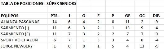 | Alianza Pascanas | 1(4) | Sarmiento (I) | 1(5) |