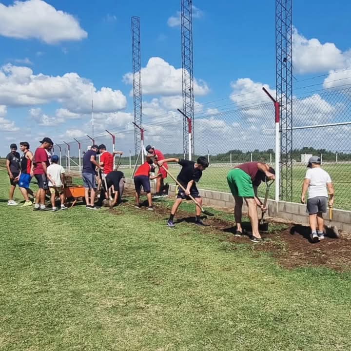 Sp. Rural trabaja sobre su cancha principal en la mejora de su piso.