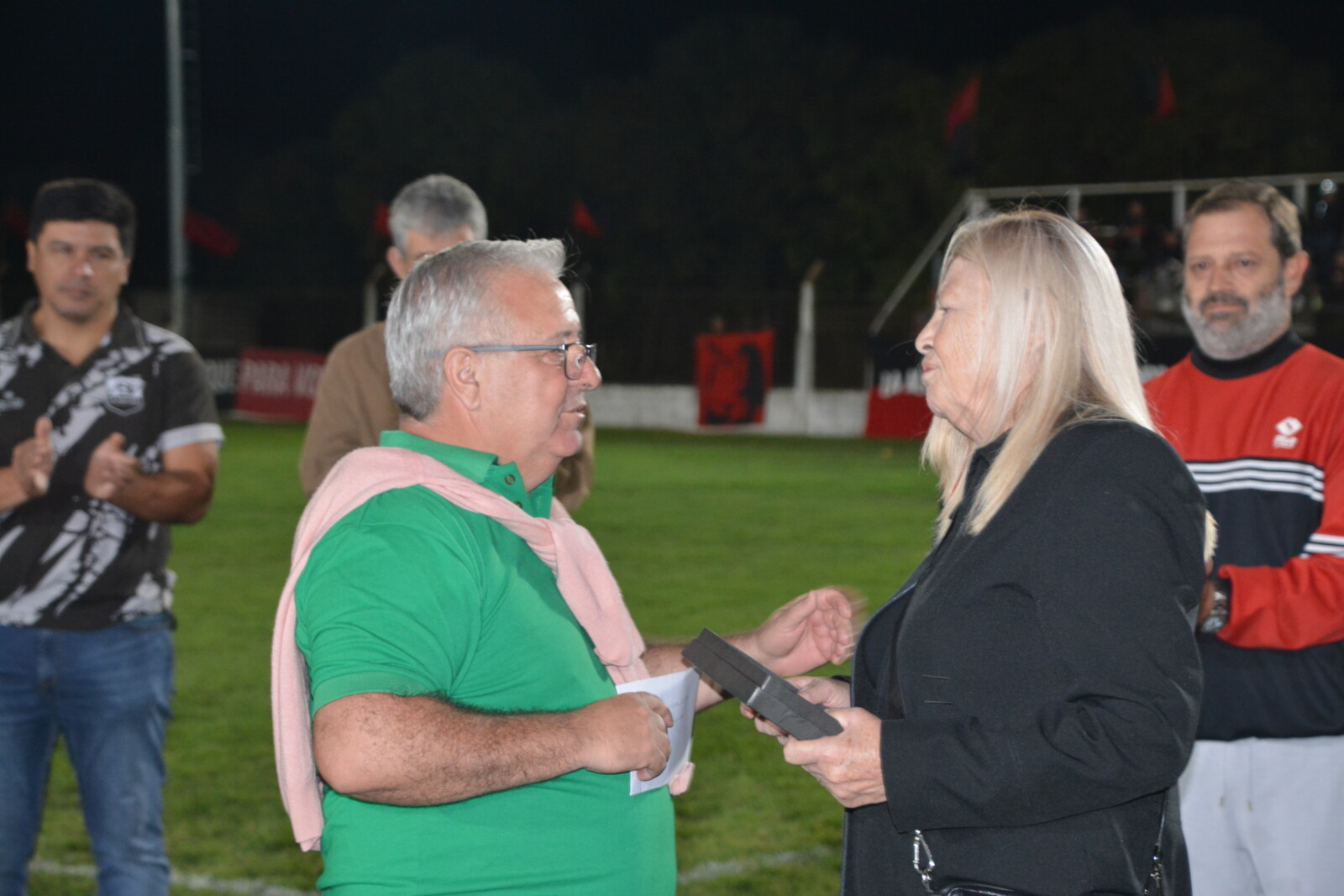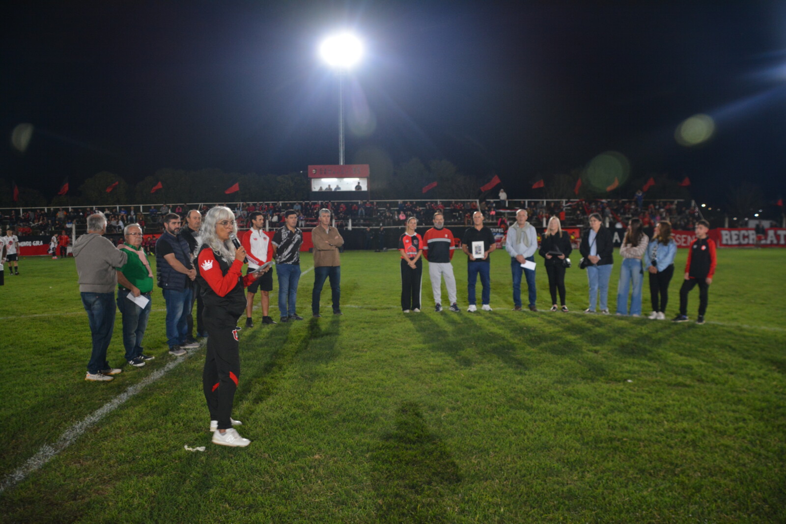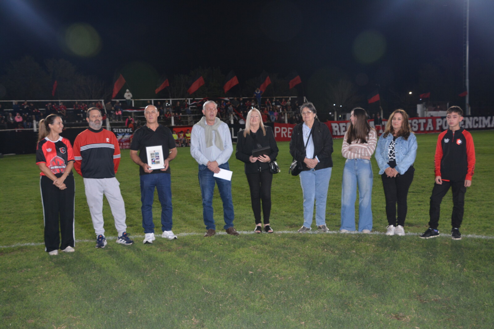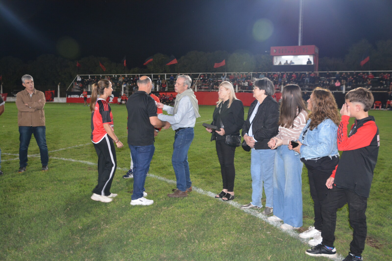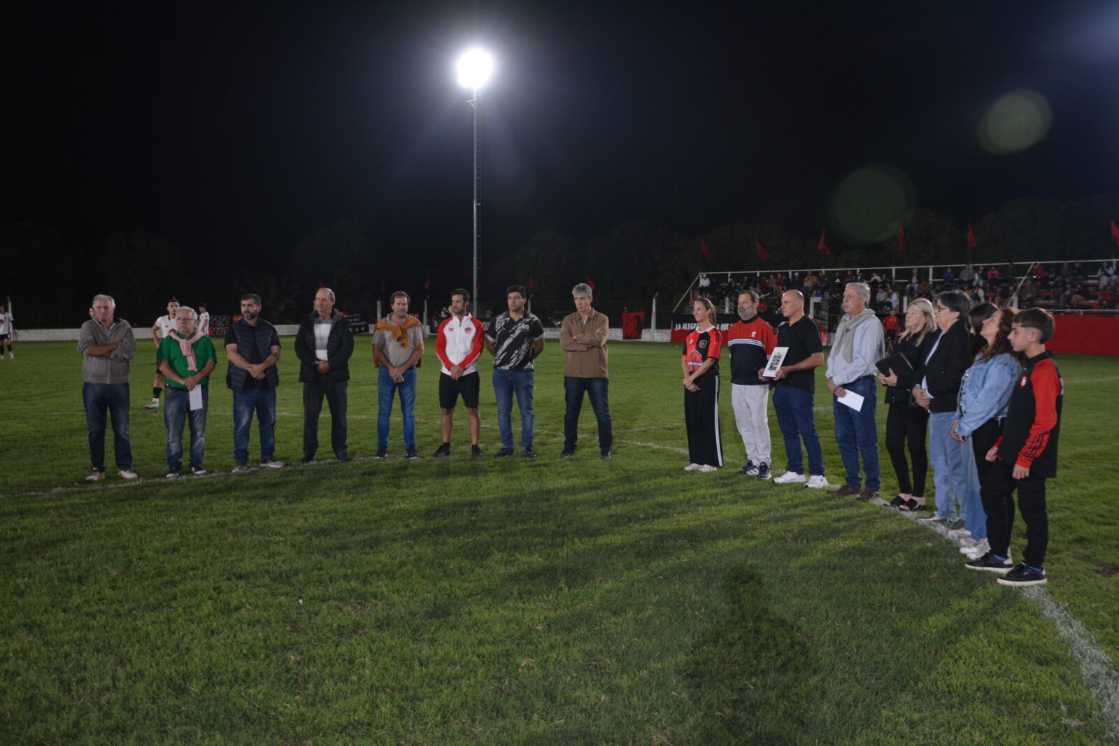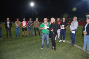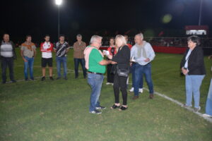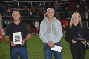 En la previa del encuentro de Primera División, el presidente David Pirchio, acompañado por directivos de la Mesa Directiva de la Liga Beccar Varela, y Javier Bertola, presidente del club, entregaron placas recordatorias a familiares de Hugo Soliani.