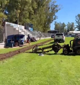 En su estadio, ya se realizaron las zanjas para la colocación de las mangueras, y en días nada más, quedará habilitado un sistema de riego que cuenta con 35 picos distribuidos en todo el campo principal, que le permitirá mejorar la calidad del terreno de juego.
