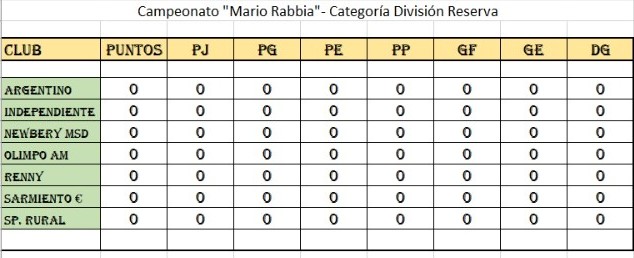 J. Newbery, Olimpo, Sp. Rural, Argentino, G. Renny, Sarmiento (E), Independiente